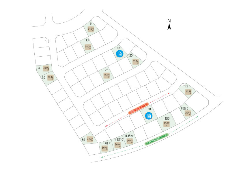 | Ⅱ-11 | 南東 | 120.50 | 36.45 | 33.50 | 12,210,750 | 保留地 |