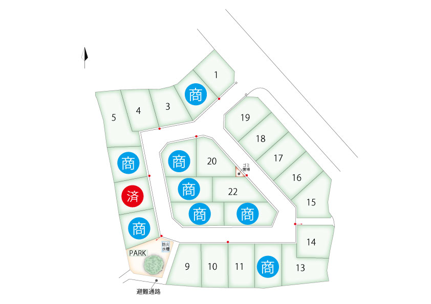 | 分譲形態(条件) | 建築条件付宅地分譲 販売区画数25区画 ※建築外付帯工事・建築付帯諸費用・負担金は別途必要です。 |